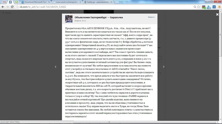 Просматривая на днях один из пабликов Екатеринбурга по продаже различных б/у или ненужных вещей, наткнулась на один очень занимательный пост. Он явно выделялся на фоне остальной серой массы, которую пробегаешь глазами, если категория товара тебя в принципе не интересует. Возможно вы со мной не согласитесь, но поделиться этим маленьким "шедевром" я посчитала своей обязанностью