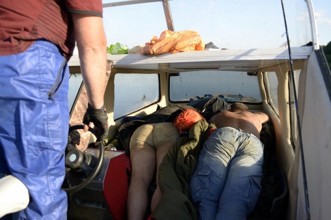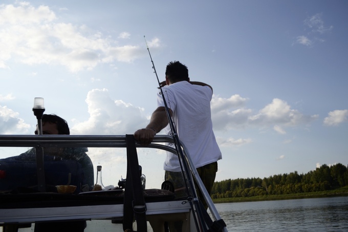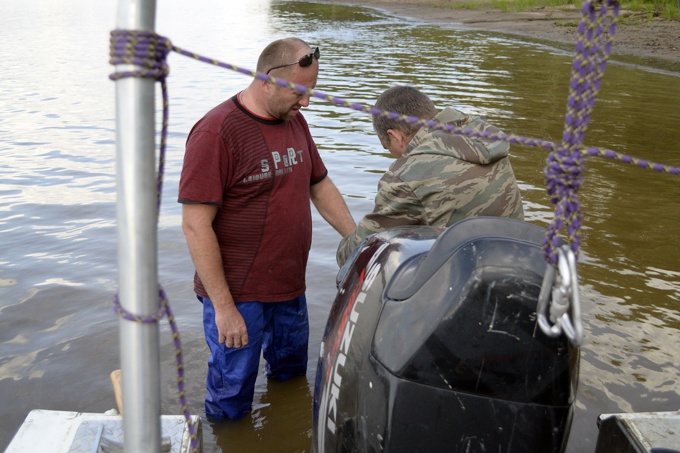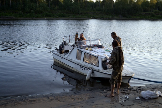 Володя. Мой друг и хозяин данного аппарата. На нем, на аппарате, мы сюда и добрались. Катер с ночующими прячется за Володиной спиной и дожен подойти к восьми часам.