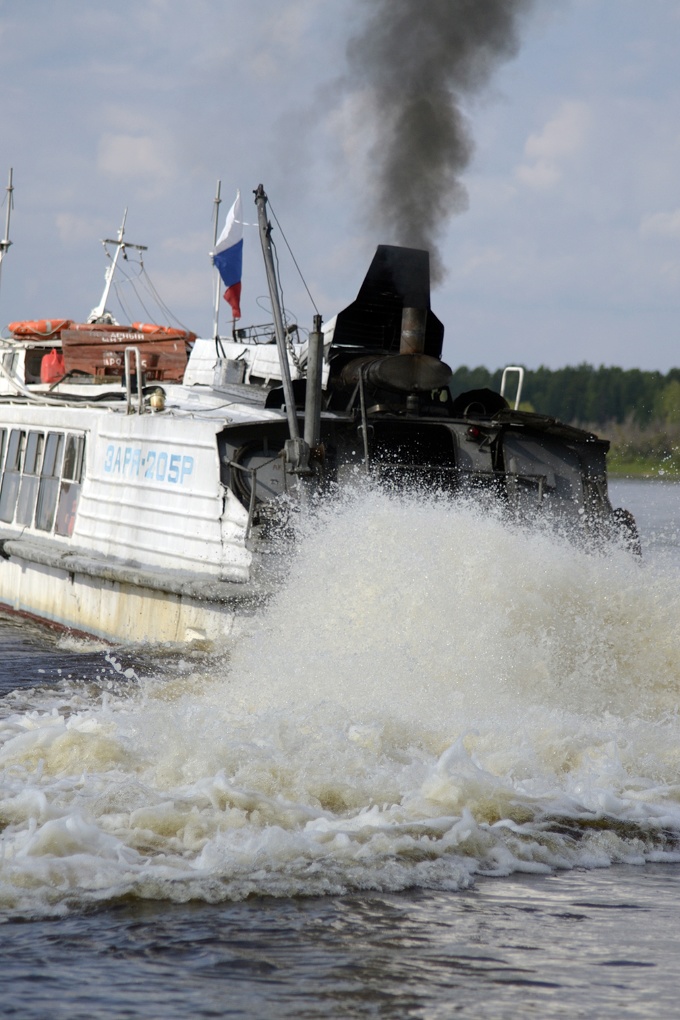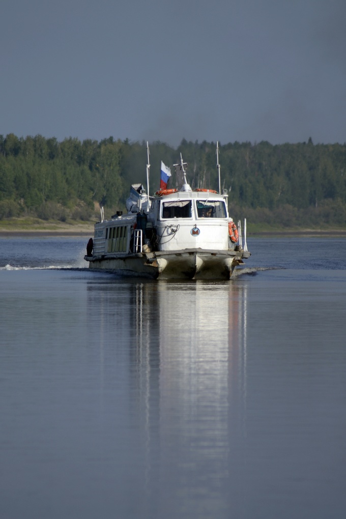 Нужно сказать, что как раз в это время приходит теплоход "ЗАРЯ". Это единственная нить, которая три раза в неделю связывает отдаленные деревни в верховье Тавды с райцентром. В Советские времена, немного другая , но более симпатичная модификация это теплохода ходила по реке ежедневно и с огромной скоростью. Вернее их было две. Ходили навстречу друг другу. Теперь это сборная модель теплохода с нештатным мотором. Он постоянно ломается и скорость его не намного выше течения реки.