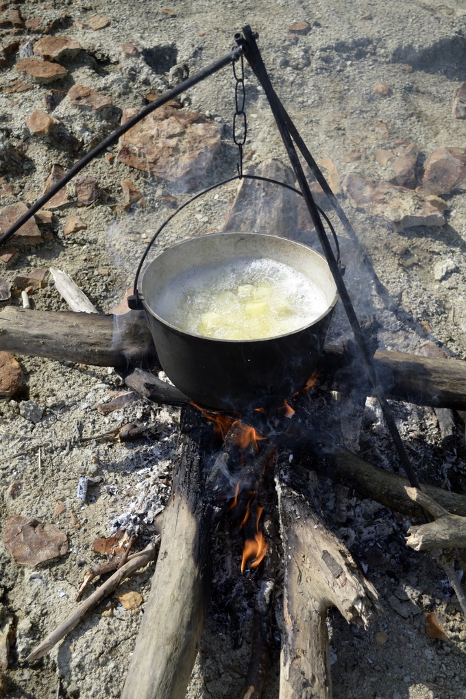 Первая стоянка. Коньяк действительно быстро всосался в стенки желудка и попал в кровь. А потому было принято решение сварить ухи, пообедать и продолжить путь.