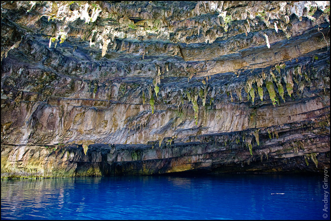 Это геологическое образование возникло благодаря сложному карстовому процессу – растворению горных пород – в течение которого вода, проделывая себе ходы в известняковых породах, разрушала их и создавала впадины. В центре пещеры Мелиссани находится изумительно-красивое подземное озеро, возраст которого достигает 20 тысяч лет. Его кристально чистые бирюзовые воды в обрамлении изумрудных зарослей создают здесь поистине сказочную атмосферу. Неудивительно, что древние греки считали это место обителью нимф.