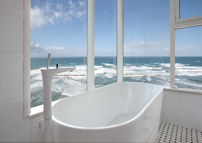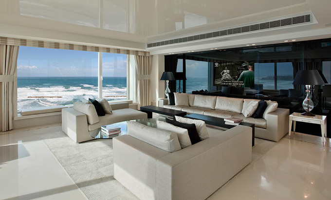 Архитектор Даниэль Хассон представил если не самый идеальный, то уж точно один из самых запоминающихся проектов. Частный дом Sea Breeze расположен на побережье в Тель-Авиве, Израиль. Дом так близок к воде, что из его окон, которые, кстати, заменяют большинство стен, не видно даже берега – только морские волны.