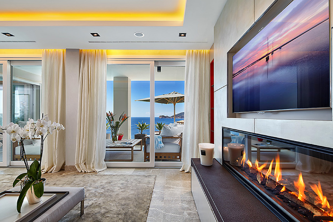 Эта элегантная вилла расположена в престижном жилом районе живописного города Порт Андрач на острове Майорка, Испания. Помимо захватывающего дух панорамного вида на море она привлекательна стильным решением интерьера. Резиденция представлена двумя этажами, на которых предусмотрены просторная гостиная с камином, кухня, столовая, несколько спален с ванными комнатами, бассейн и ряд террас, оборудованных для отдыха под открытым небом или защищённых навесами. Общая площадь виллы составляет 355 кв. метров, а её рыночная стоимость равна 3 600 000 евро.