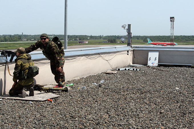 В понедельник в районе аэропорта Донецка велись боевые действия с применением авиации. Ополченцы в результате отступили вглубь города. Они укрепились в зданиях областной госадминистрации, областного управления СБУ, райотдела СБУ Куйбышевского района и еще в ряде зданий. Премьер ДНР Александр Бородай сообщил о гибели приблизительно 100 ополченцев и мирных жителей, Донецкий горсовет — лишь о 40 погибших.