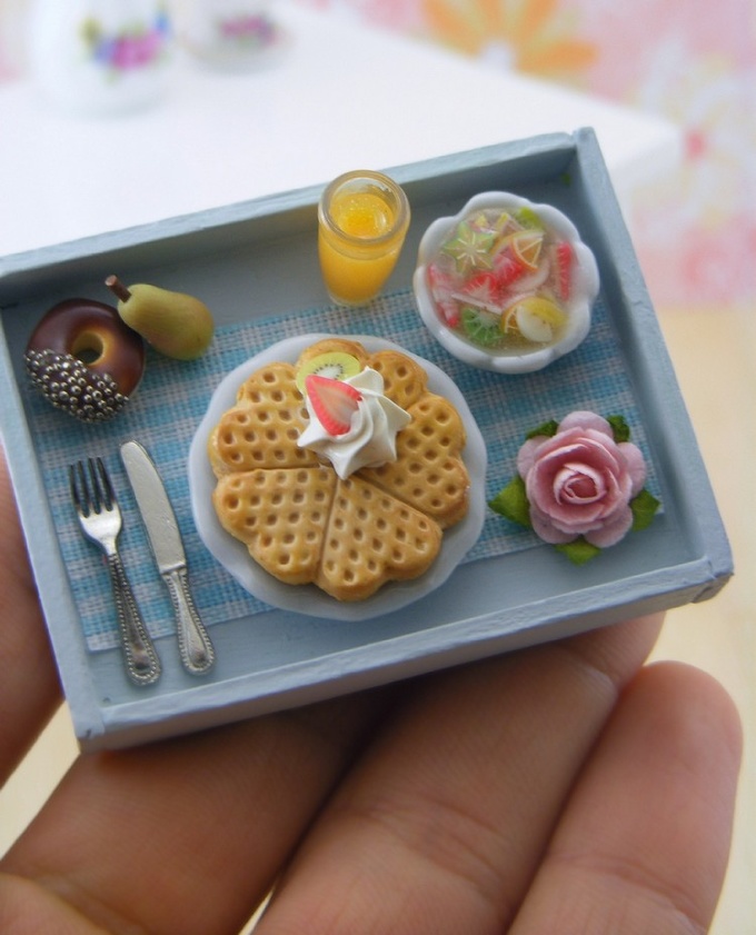 Художник и фотограф Шай Аарон настолько любит еду, что даже создаёт из полимерной глины замечательные миниатюры на тему её готовки. Даже без лупы эти миниатюрные скульптуры смотрятся весьма аппетитно. Кроме того, подобные работы неплохо раскупаются поклонниками фуд-арта со всего мира.