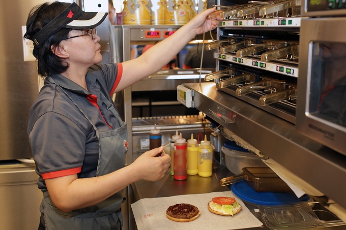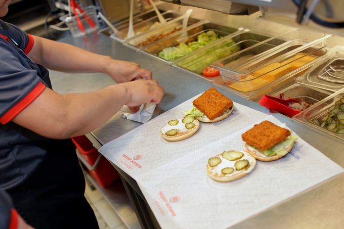 После того, как кассир примет заказ, он тут же появляется на специальном мониторе, и повара принимаются за приготовление пищи. К слову, классический «Воппер» «Бургер Кинга» готовится в среднем 34 секунды. Космическая скорость!