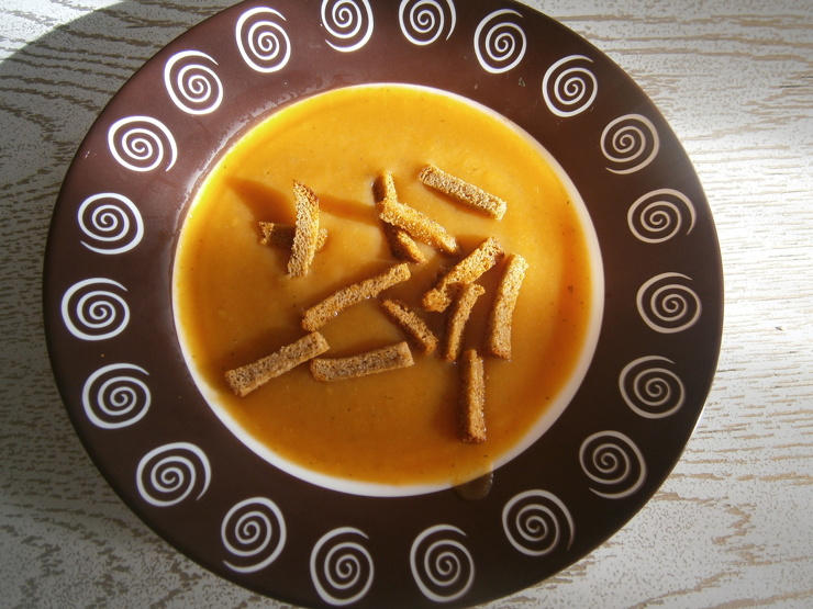 Подавать можно с сухариками ( я так люблю), зеленью, сметаной, для мелких специально добавила сосиски.