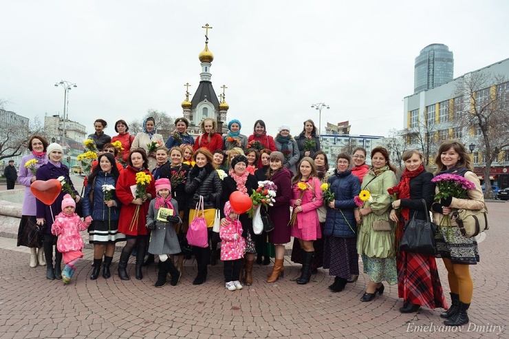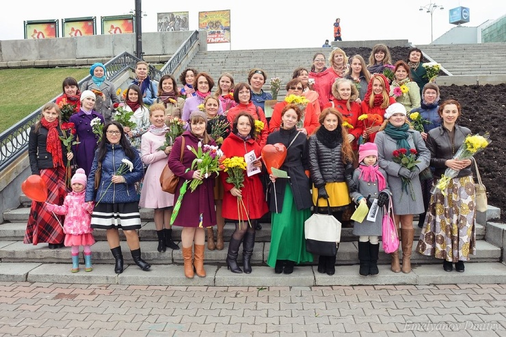 Давайте сделаем мир красивее, а женщин вокруг – чуточку счастливее!Вы можете просто красиво постоять на площади, выпить чаю с пирожным или пообщаться с единомышленницами…. А может быть, вы решите станцевать или спеть? Или оденетесь в единой цветовой гамме? Вариантов очень много!