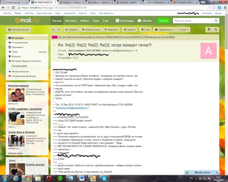 >>> Thu, 18 Sep 2014 14:58:34 +0600 (YEKT) от Автотрейдинг/ ООО АЕ5000