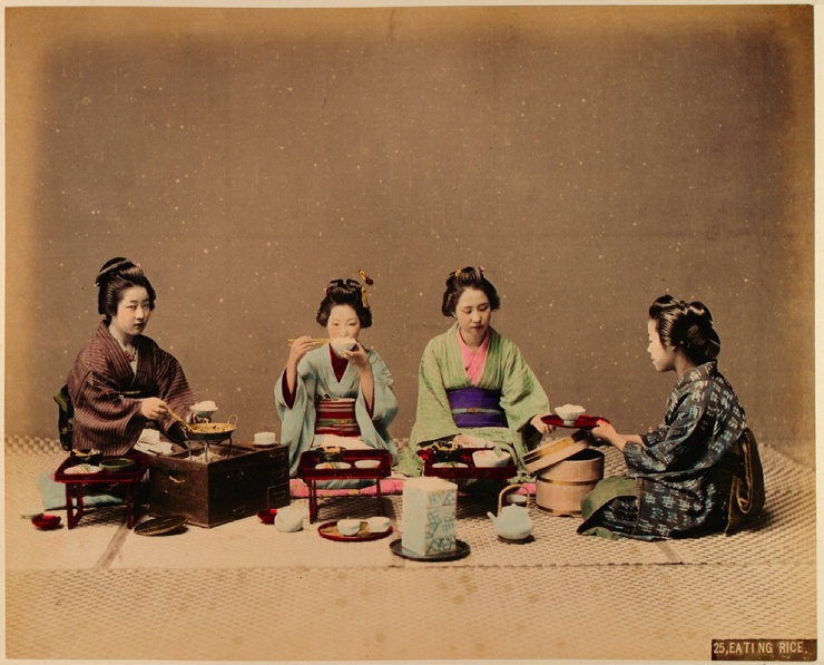 Есть рис считалось привилегией: большинство крестьян и ремесленников, особенно городских, не могли себе позволить такое питание (ели просо и другие не столько питательные зерновые, и это негативно сказывалось на здоровье; это отражено в классическом фильме А. Куросавы «Семь самураев».