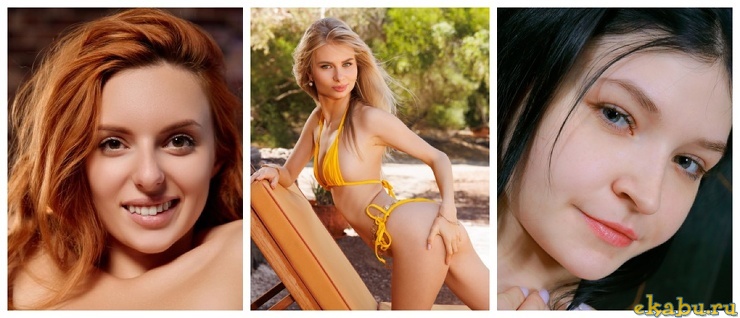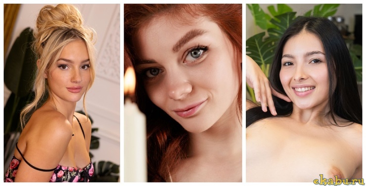 Рыжая красавица раздевается у себя на даче блондинка с сексуальным телом лежит на кровати и тощая брюнетка с сексуально позирует перед камерой на каблуках