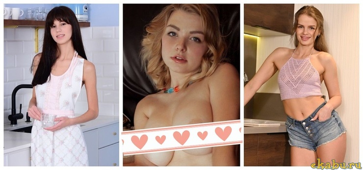 Рыжая девушка с сочной задницей позирует обнаженной на кухне сисястая блондинка на кожаном диване и Сексуальная брюнетка в фартуке без трусиков