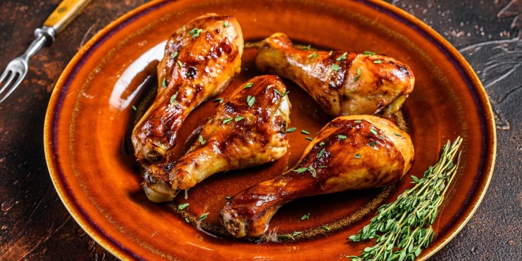 Имбирь и карри придают курице яркий аромат, горчица — пряный вкус, а мёд — румяную аппетитную корочку.