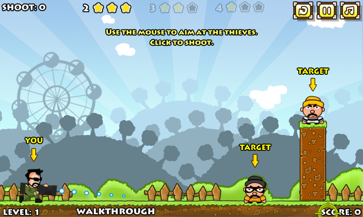 Охранники королевского замка украли корону короля. Ваша задача – вернуть сей ценный предмет гардероба. Для этого в вашем арсенале имеется набор различных снарядов, которые нужно правильно бросить, чтобы убрать всех плохих стражей.