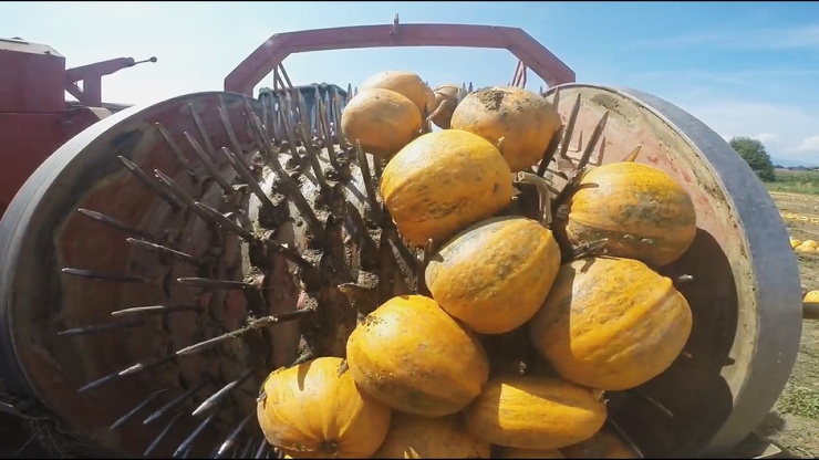 Удивительные современные мега машины и сельское хозяйство: необычные экзотические тракторы, комбайны, машина для сбора тыквы и тому подобное. Удобрение полей тыквой, кабачками и подсолнухками.