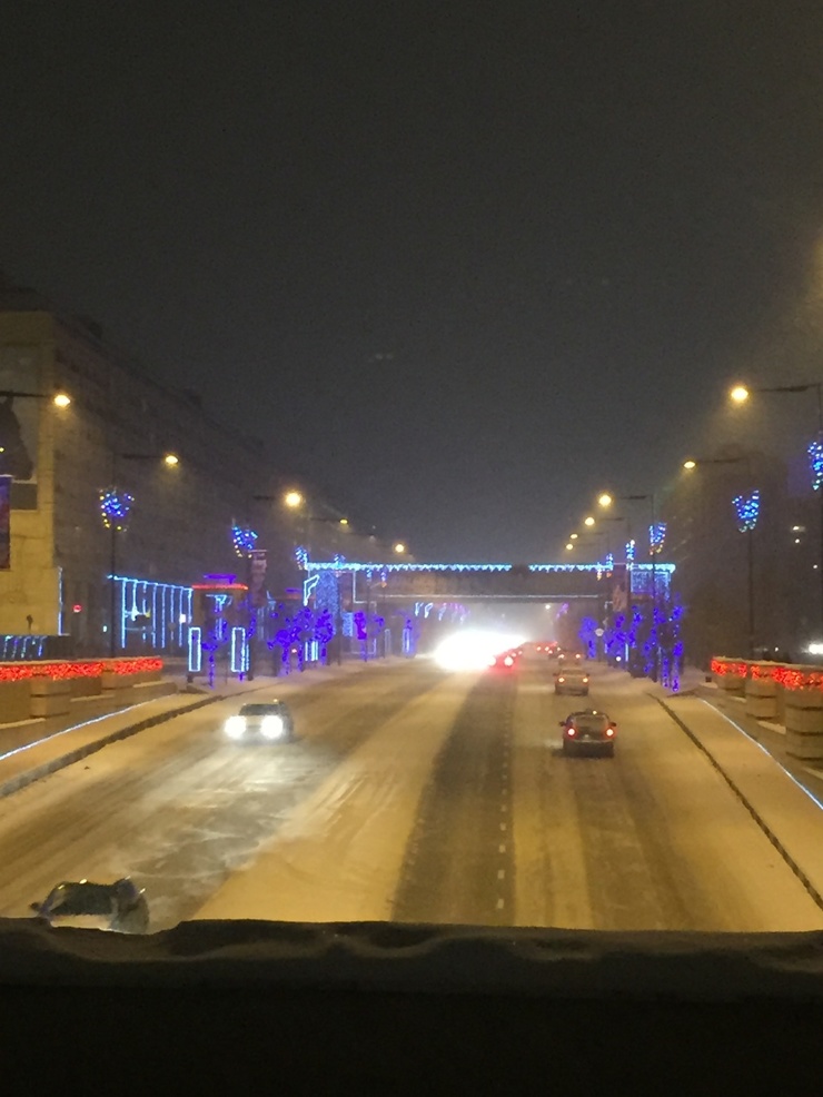 Город стал очень красив вечером, когда зажглись огни витрин магазинов и улиц украшенных к Рождеству.