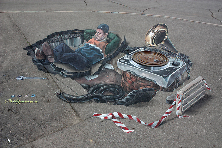 Хочу поделиться невероятными объемными рисунками на асфальте, выполненными нашим русским художником — Philippenzo Madonnaro. Он, к слову, первооткрыватель, данной техники в нашей стране, рисует уже семь лет не только в России, но и за рубежом, часто участвует в международных фестивалях и участвовал также в создании огромного 3D-рисунка для Книги рекордов Гиннесса вместе с другими известными уличными художниками из разных стран.