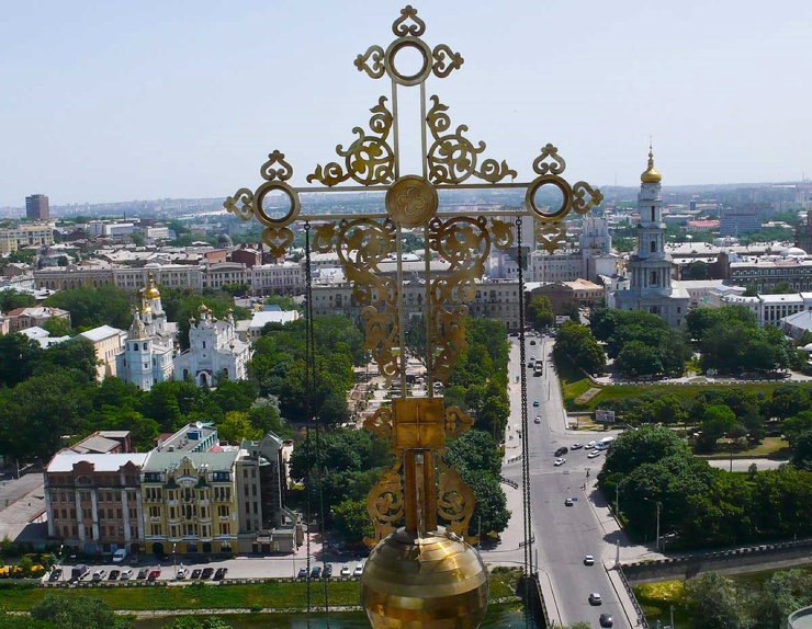 С запада Харьков начинается с района Холодная Гора,с которого виден весь город и его главная улица (Екатеринославская, Свердлова, Полтавский Шлях) на спуске проходящая мимо вокзала и далее к Лопанскому мосту(на ряде фото снятый в восточном, северном и западном направлении) с которого начинается центр города построенный на холме
