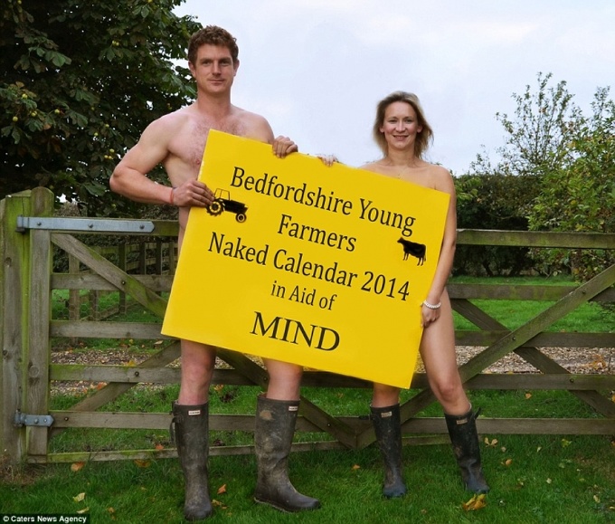 Молодые фермеры из Бедфордшира решили оголиться для календаря с одноименным названием "Голый молодой фермер 2014". На моделях этого календаря буквально практически нет ничего кроме резиновых сапог и незначительных аксессуаров. С помощью этой акции ребята хотят собрать деньги для центра психического здоровья "Mind" (Разум). Эту акцию воплотила в жизнь 20-летняя Эмили Стигглс (Emily Steaggles) , чья лучшая подруга трагически покончила жизнь самоубийством в декабре 2012 года.