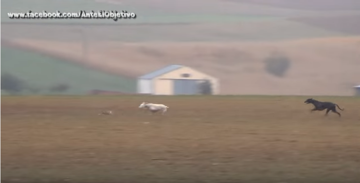 Охотничьи собаки умеют загонять жертву, но зайцы тоже знают толк в выживании, так что поймать их не так просто. Две борзых пытались замочить косого, но ничего у них не вышло - маневры зайца настолько хитрые, что предугадать их невозможно.