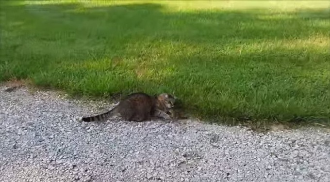 Кот-мышелов на природе раздобыл себе грызуна на обед. Но тот оказался не простой мышкой-полевкой или хомячком, а бурундуком, причем боевым. Сидя в пасти хищника он вел себя относительно спокойно, но стоило его опустить на землю, как он тут же затеял с котом драку.